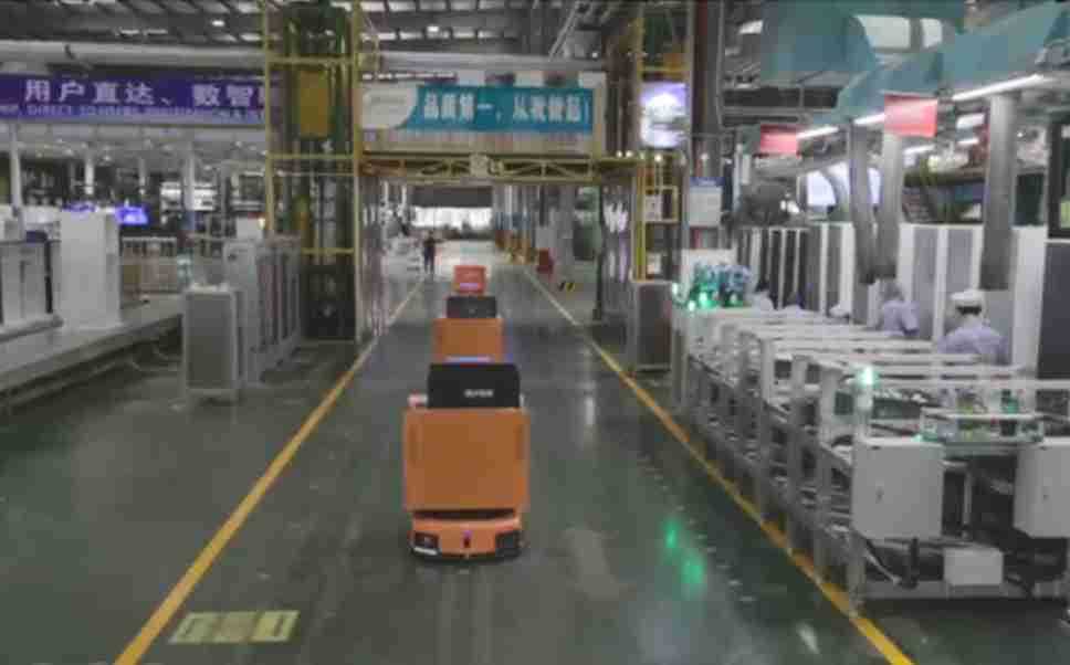 为车载冰箱物流配送打造的智能解决方案,,,包含产中物流通过潜伏举升AMR搬运至线边,,,产后成品物流智能仓储,,流程包含产中物流智能齐套入库,,,线边安灯叫料AMR智能配送至线边,,,,成品入库、、、、出库,,,,通过无人堆高车机器人,,,智能仓储管理替代人工作业管理,,实现更高存储、、、更高效率、、、更具柔性化的解决方案。。。
